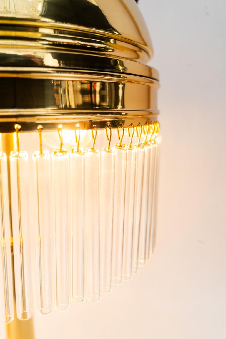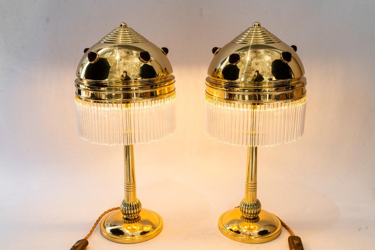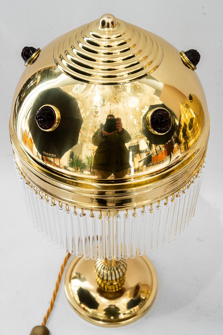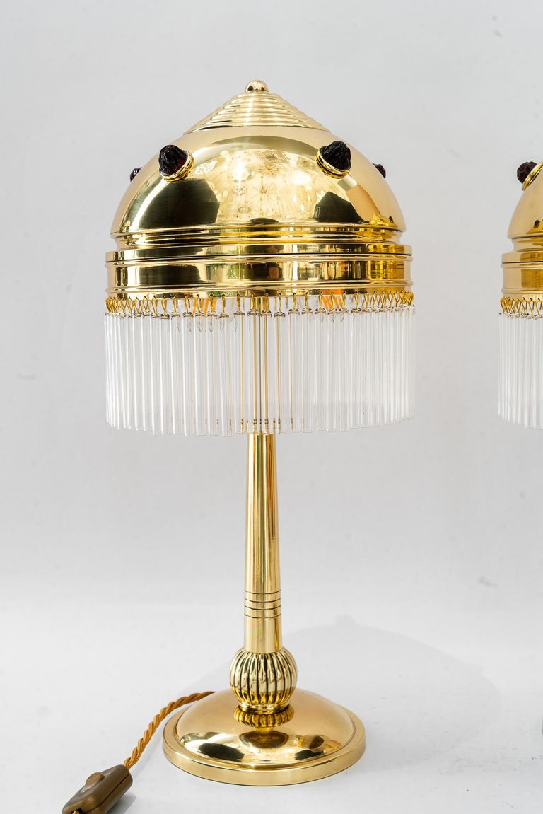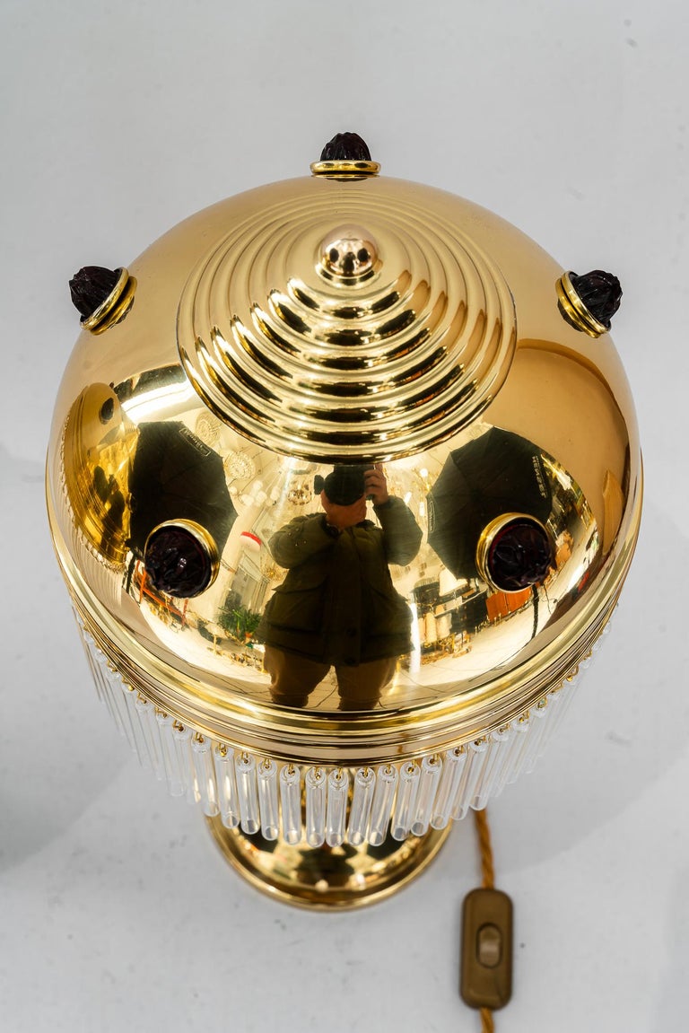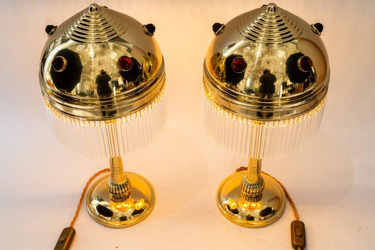 2x Art Deco Table lamps with red opaline glass stones vienna around 1920s