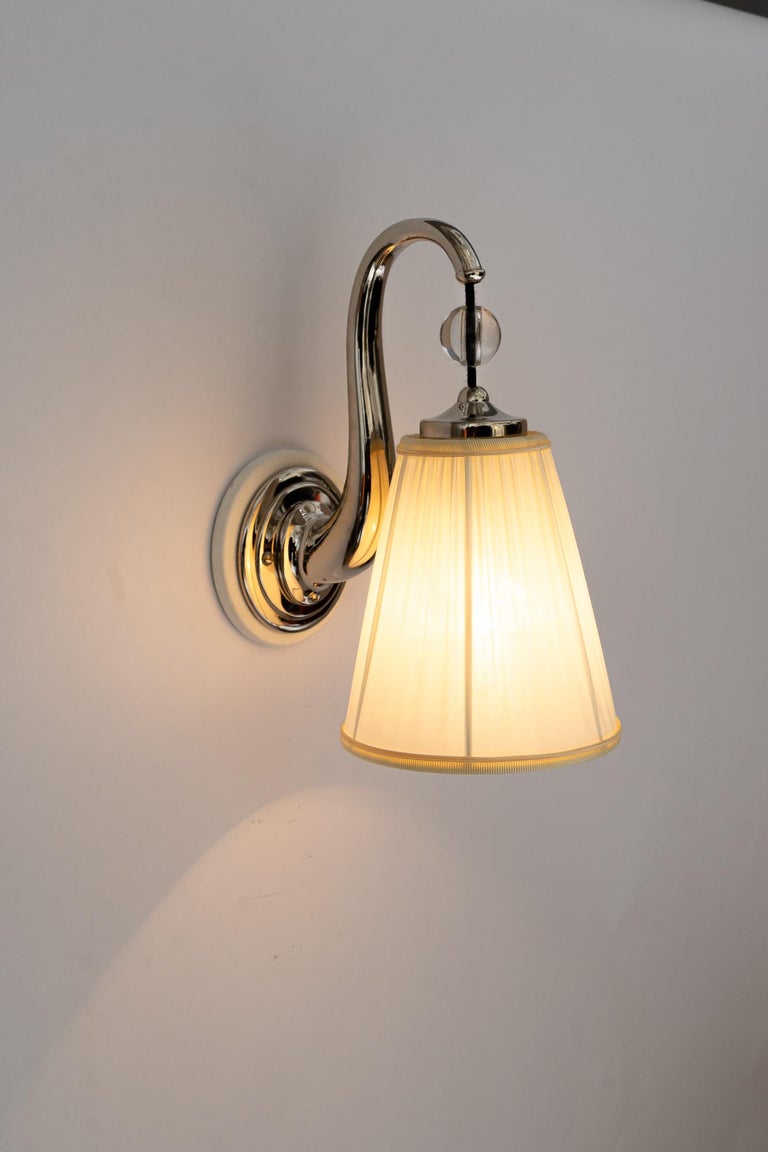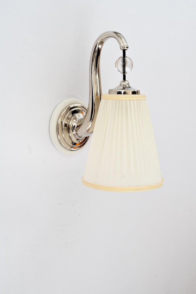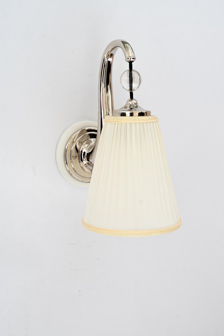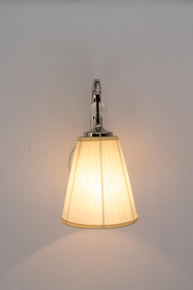 6x Art Deco nickel – plated wall lamps with fabric shades vienna around 1920s