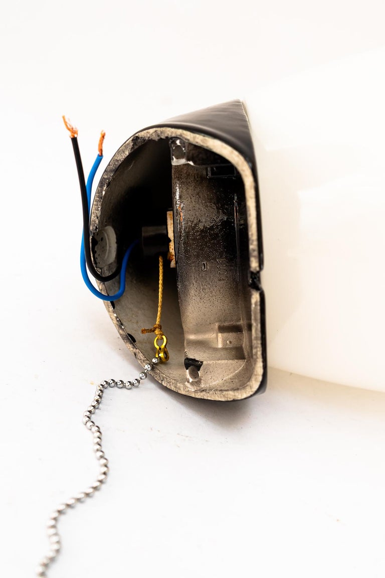 White Oval Porcelain Wall or Ceiling Lamp with Original Glass Shade, circa 1920s