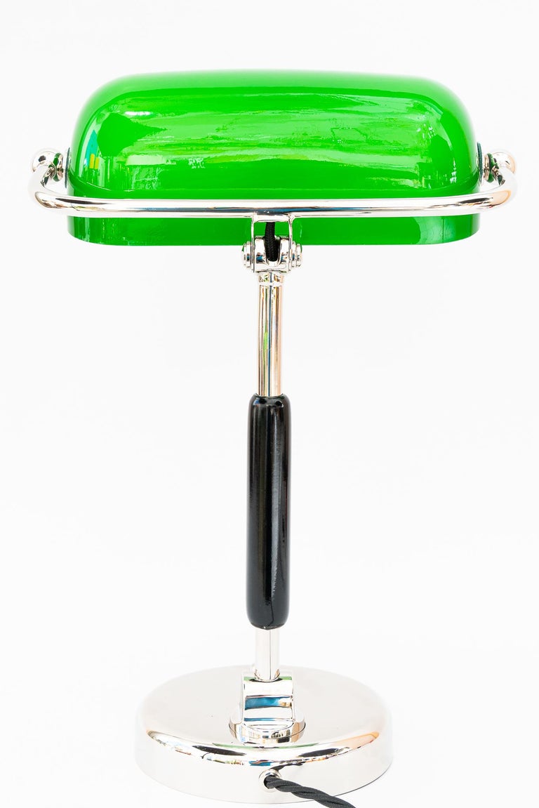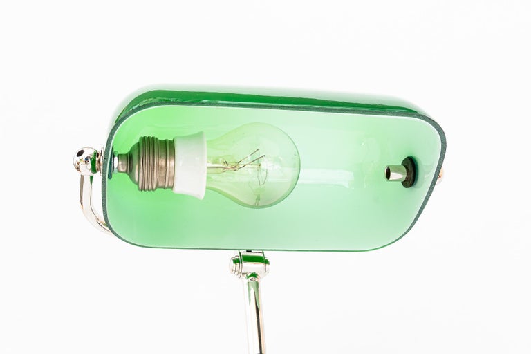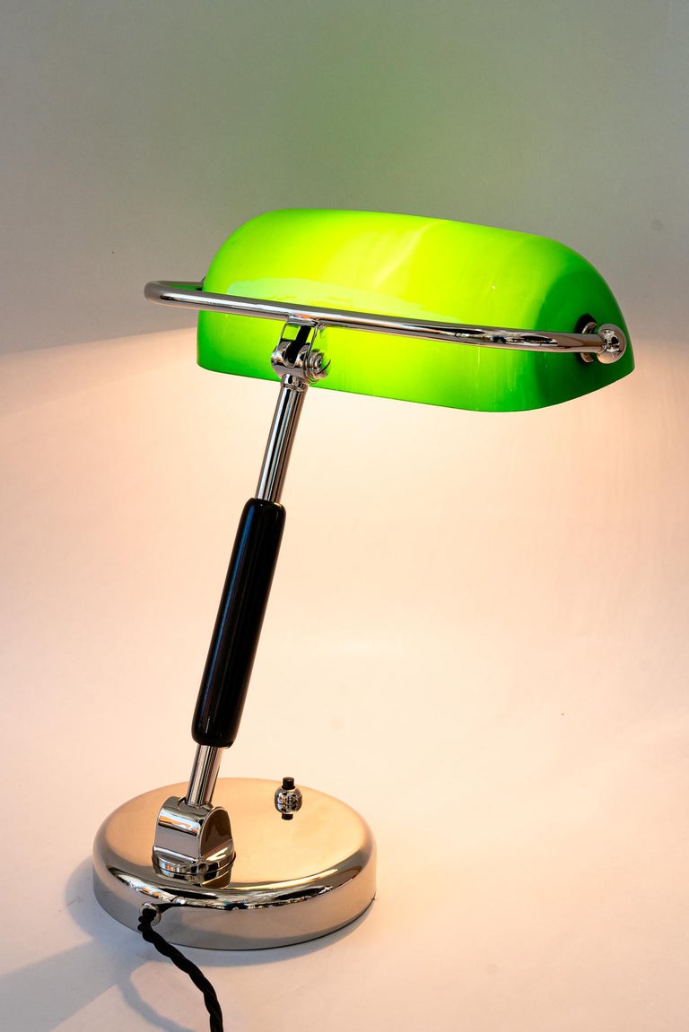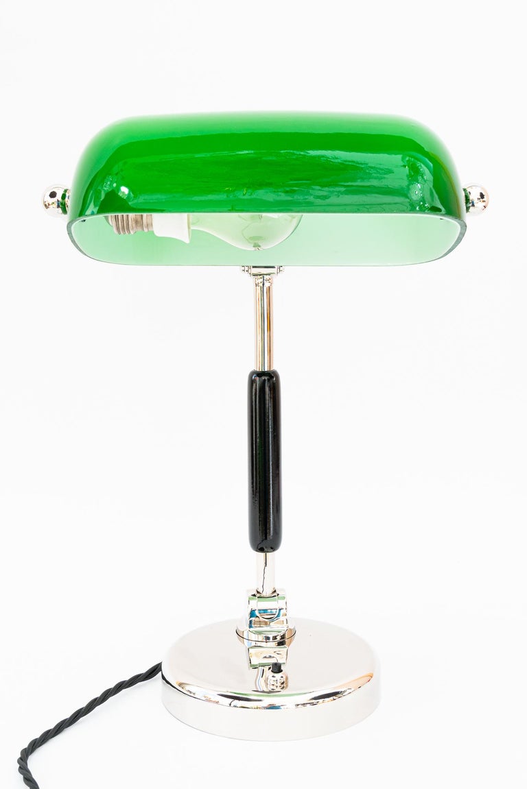 Solid Banker table lamp with original glass shade vienna around 1920s