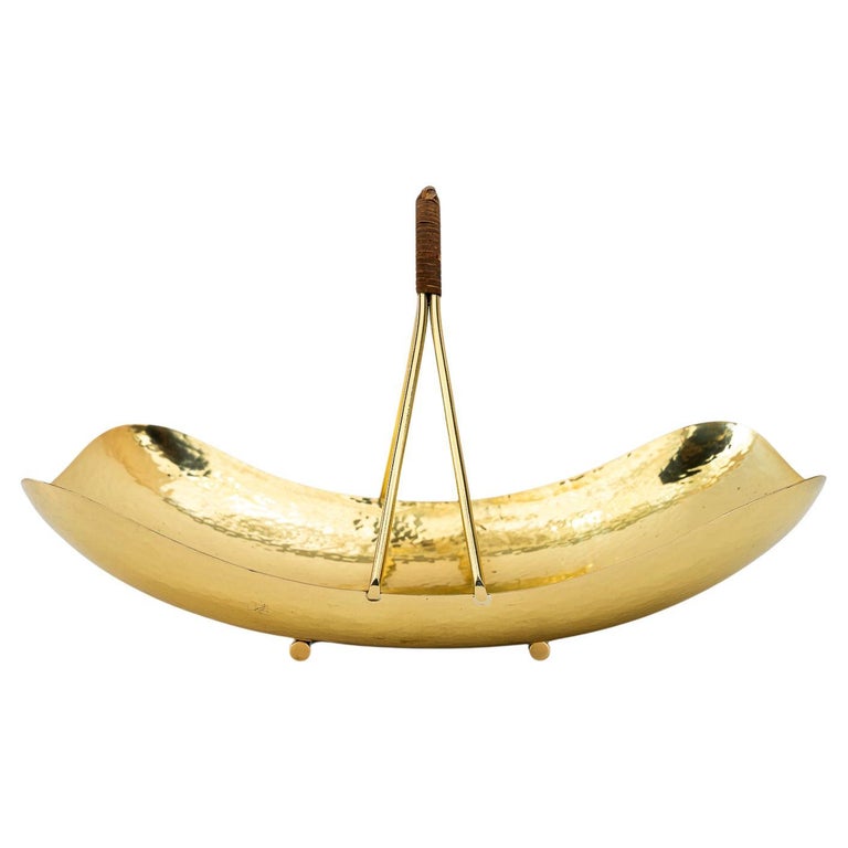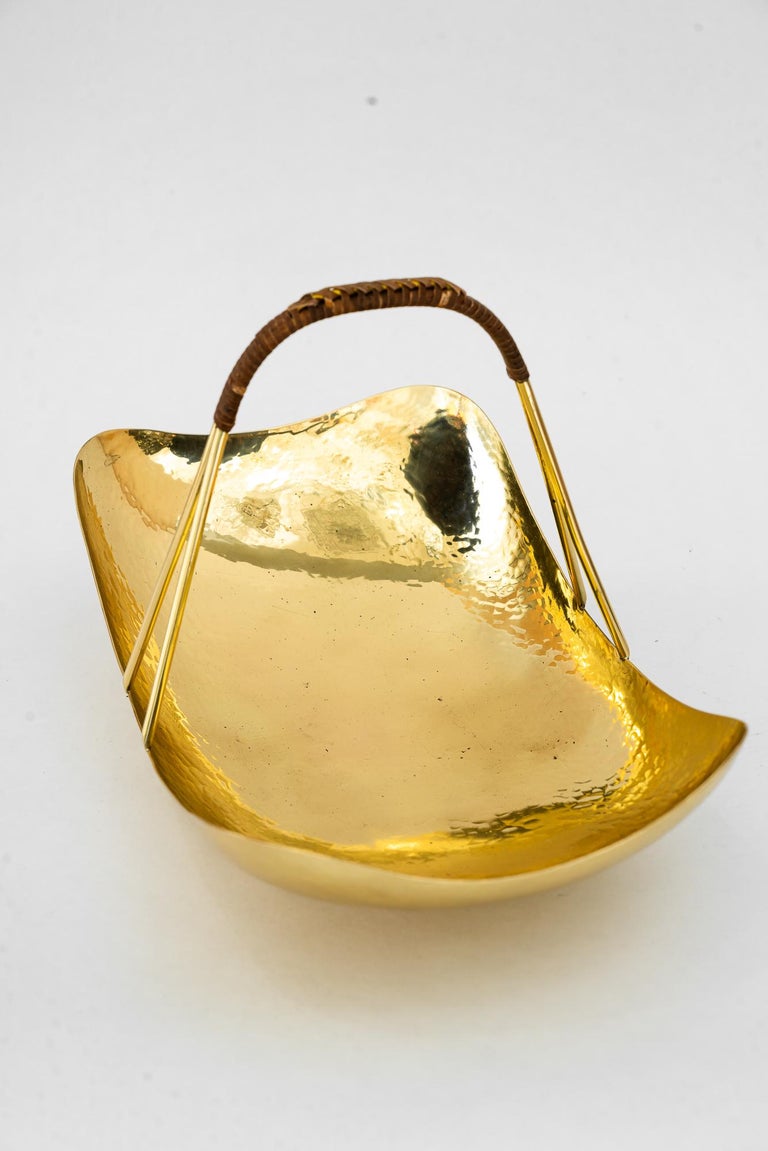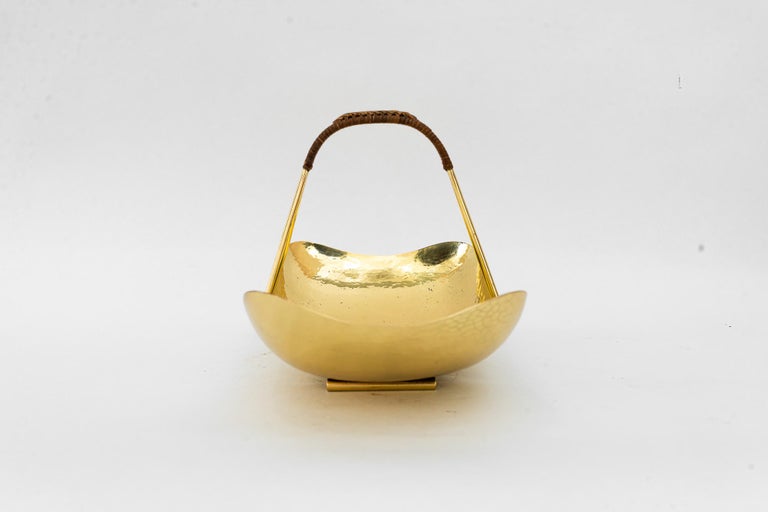 Hammered fruit bowl with wicker around 1950s