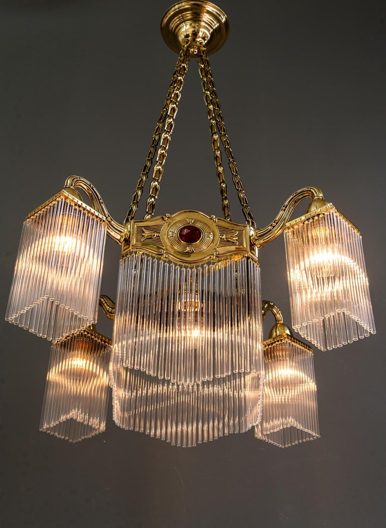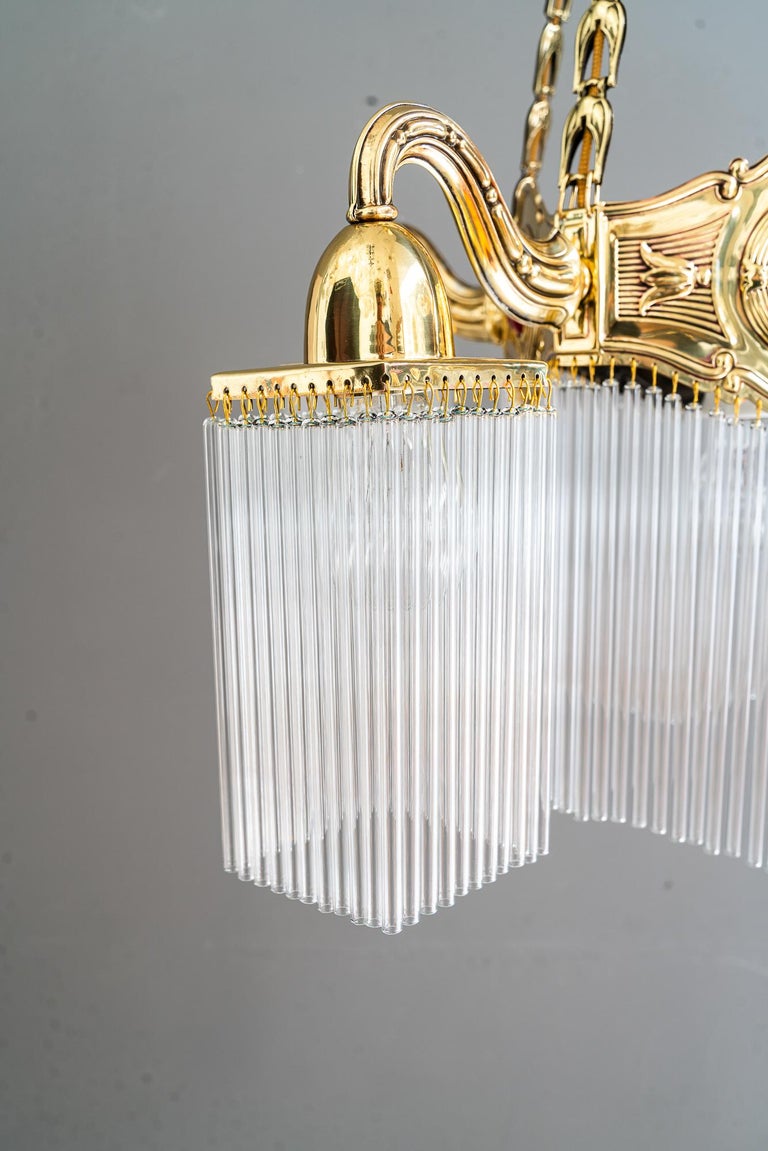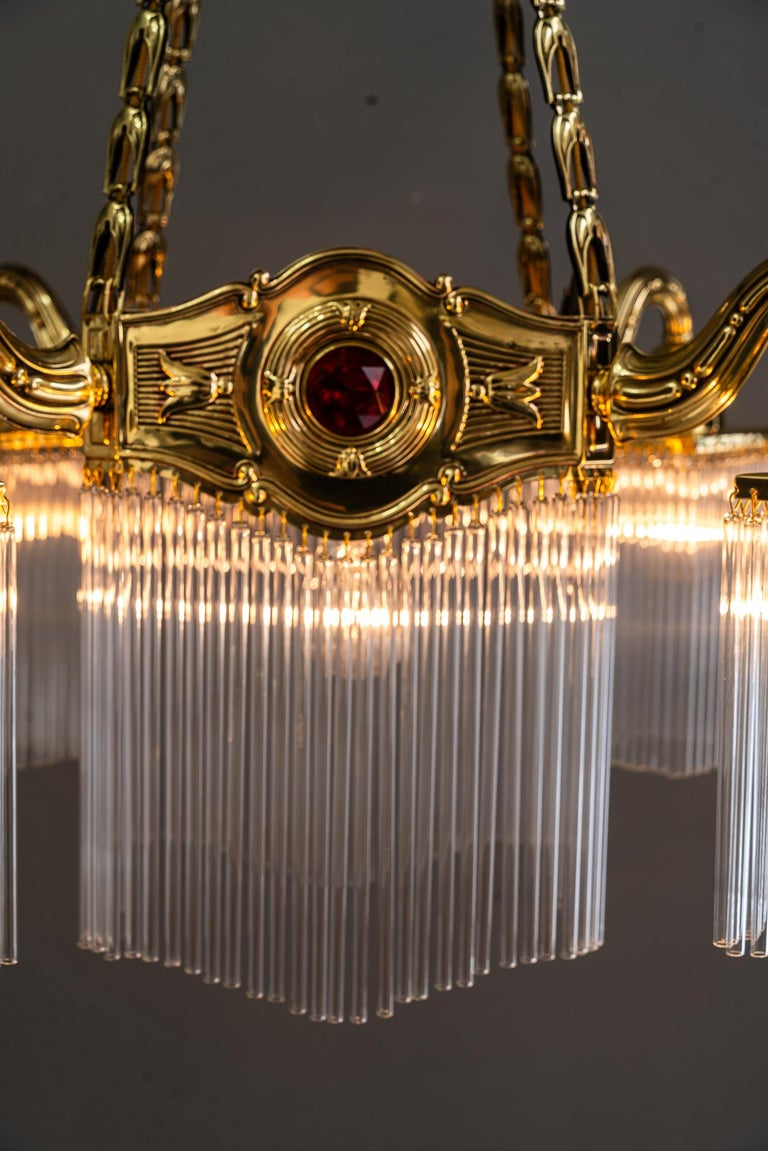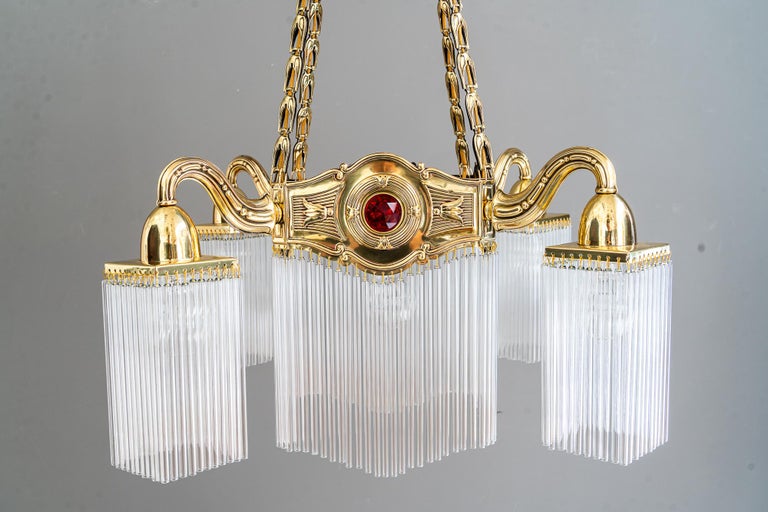 Jugendstil chandelier with original painted opaline glass vienna around 1908