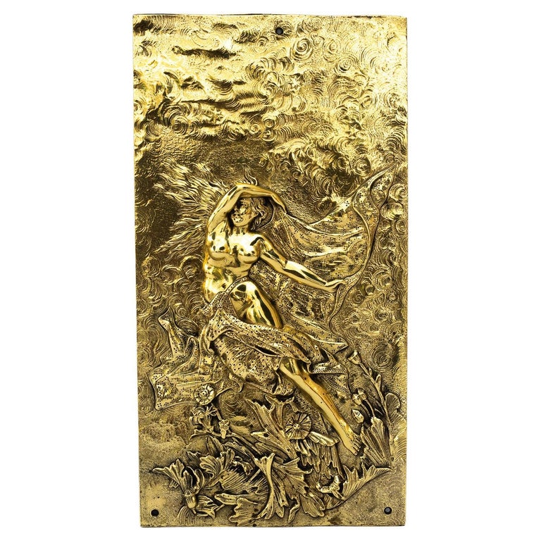 Jugendstil Cast relief polished brass vienna around 1910