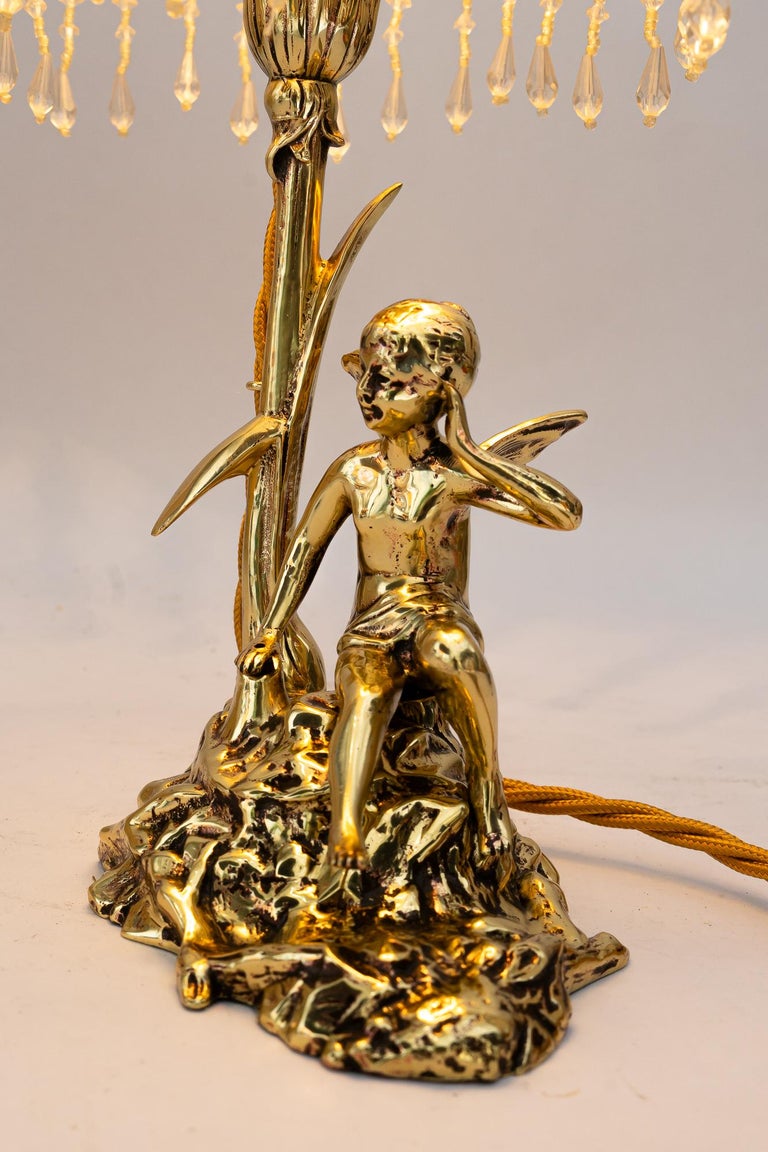 Rare Jugendstil Table Lamp with Original Opaline Glass Shade Vienna Around 1910