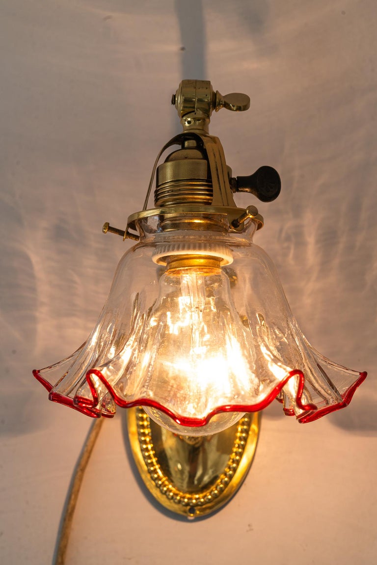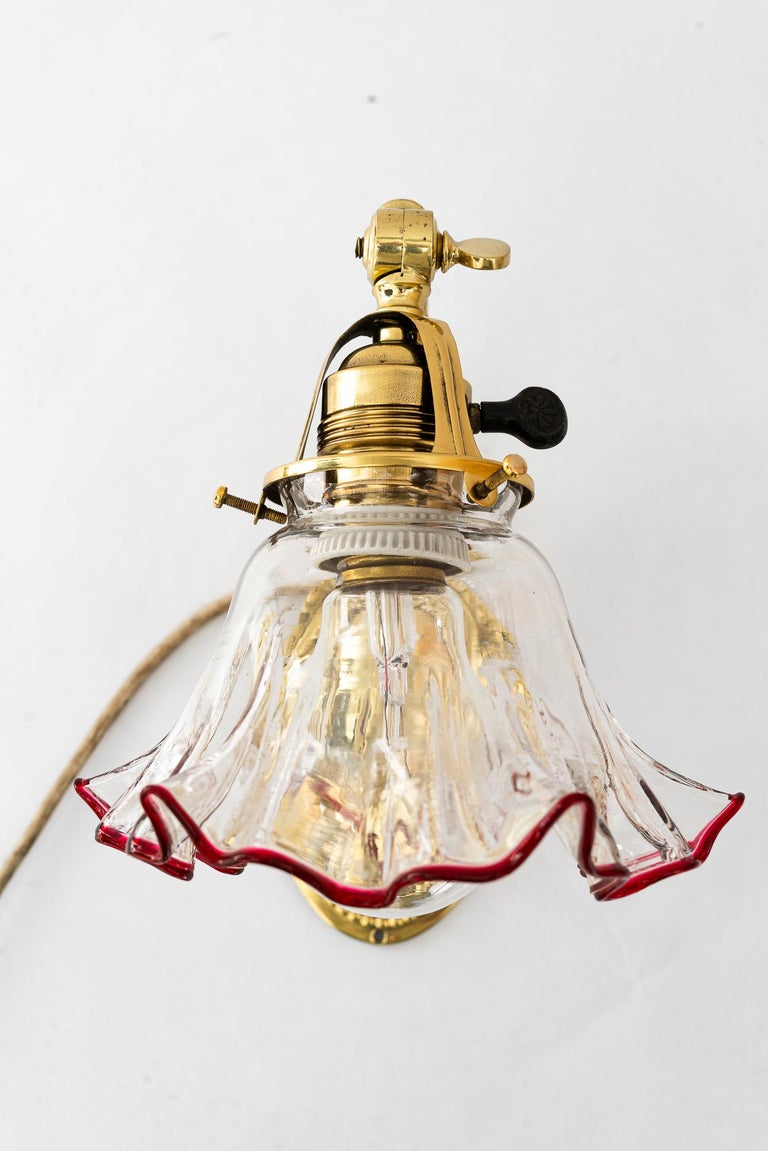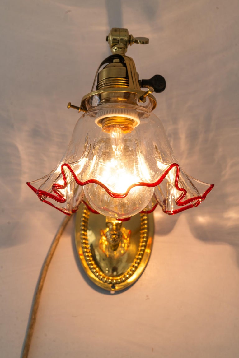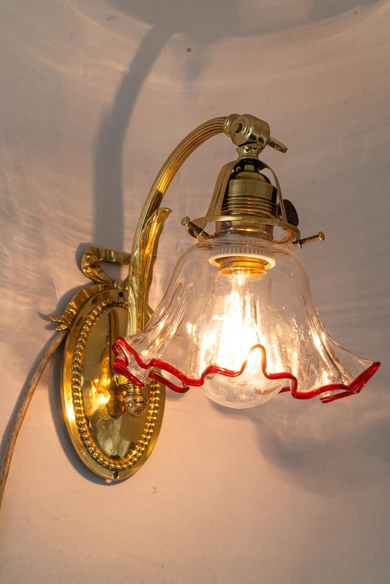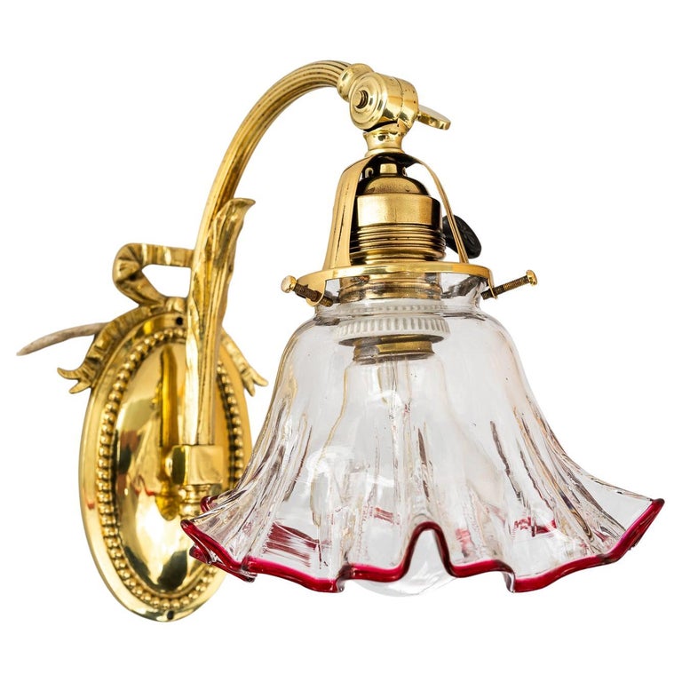 Jugendstil wall lamp with original opaline glass shade vienna around 1908