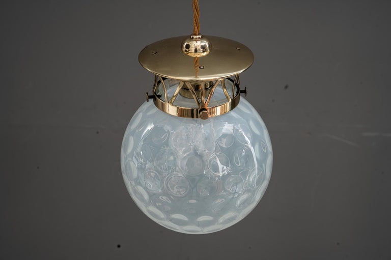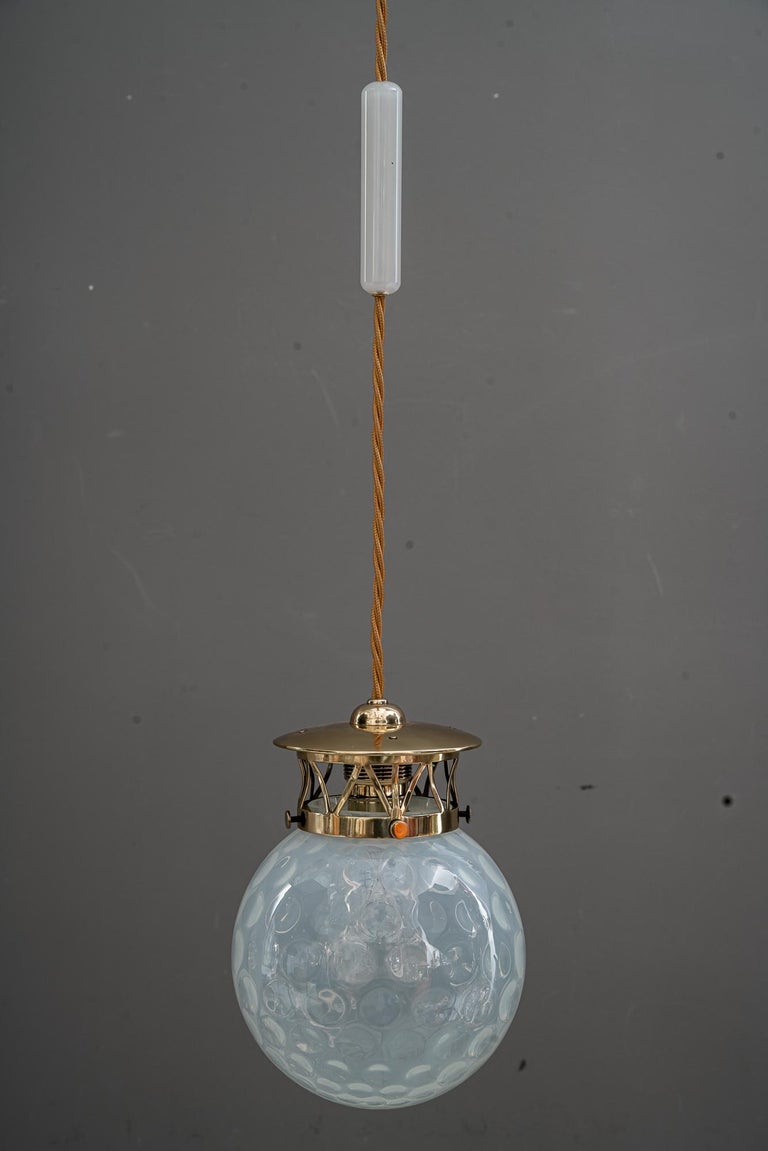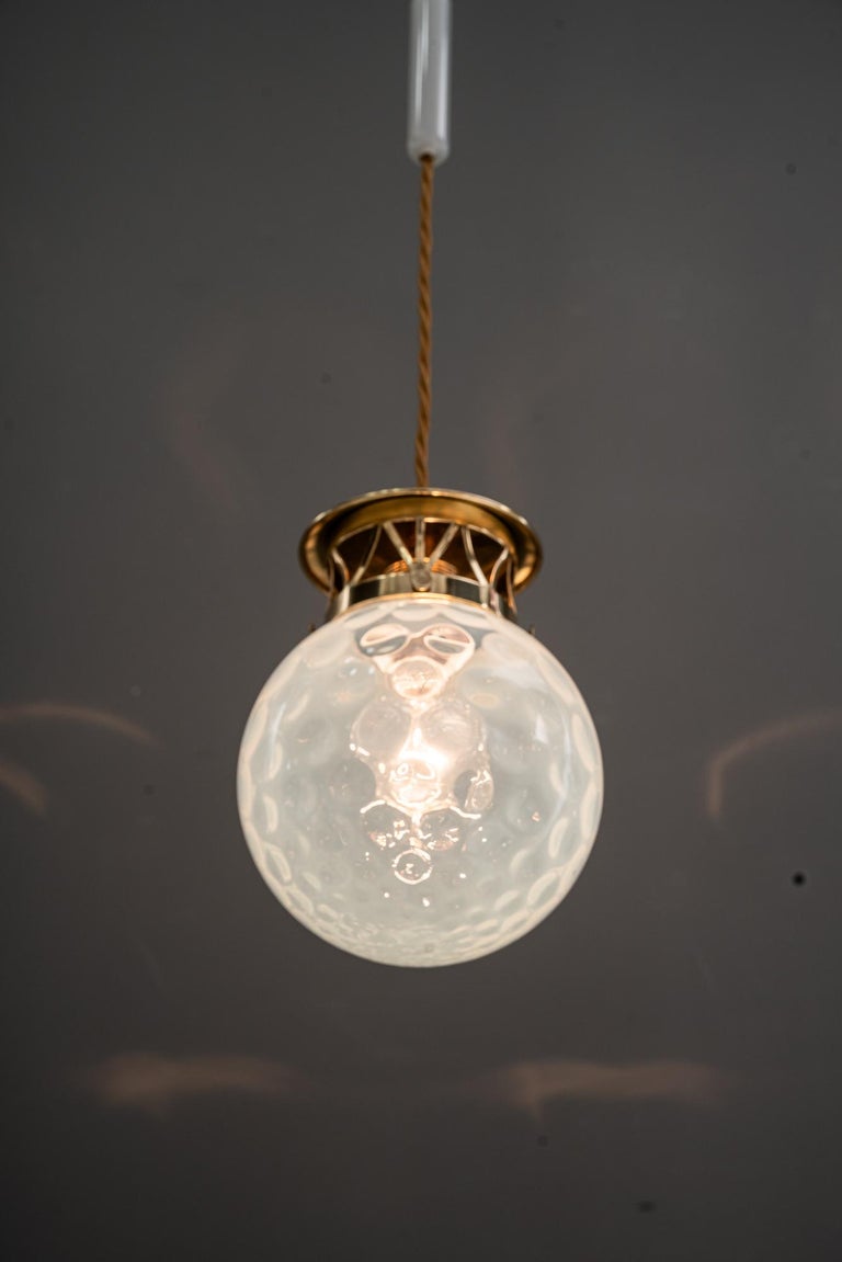 Hammered Jugendstil Pendant with Original Opaline Glass