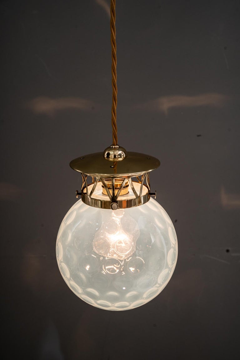 Koloman Moser Attributed to Bakalowits & Söhne Pendants with loetz glass shade