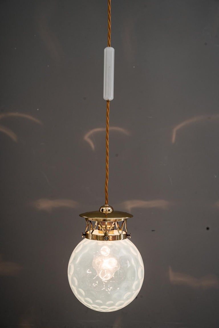 Adjustable Jugendstil chandelier with original opal glasses, Vienna, circa 1910s