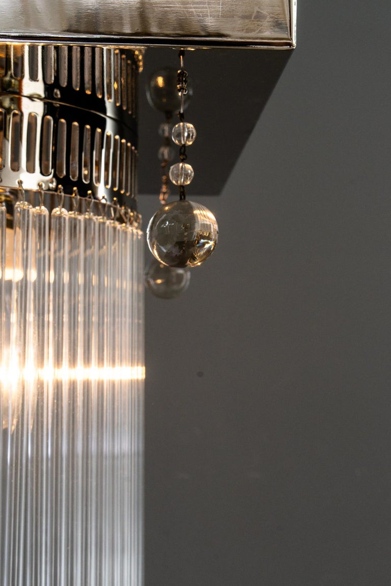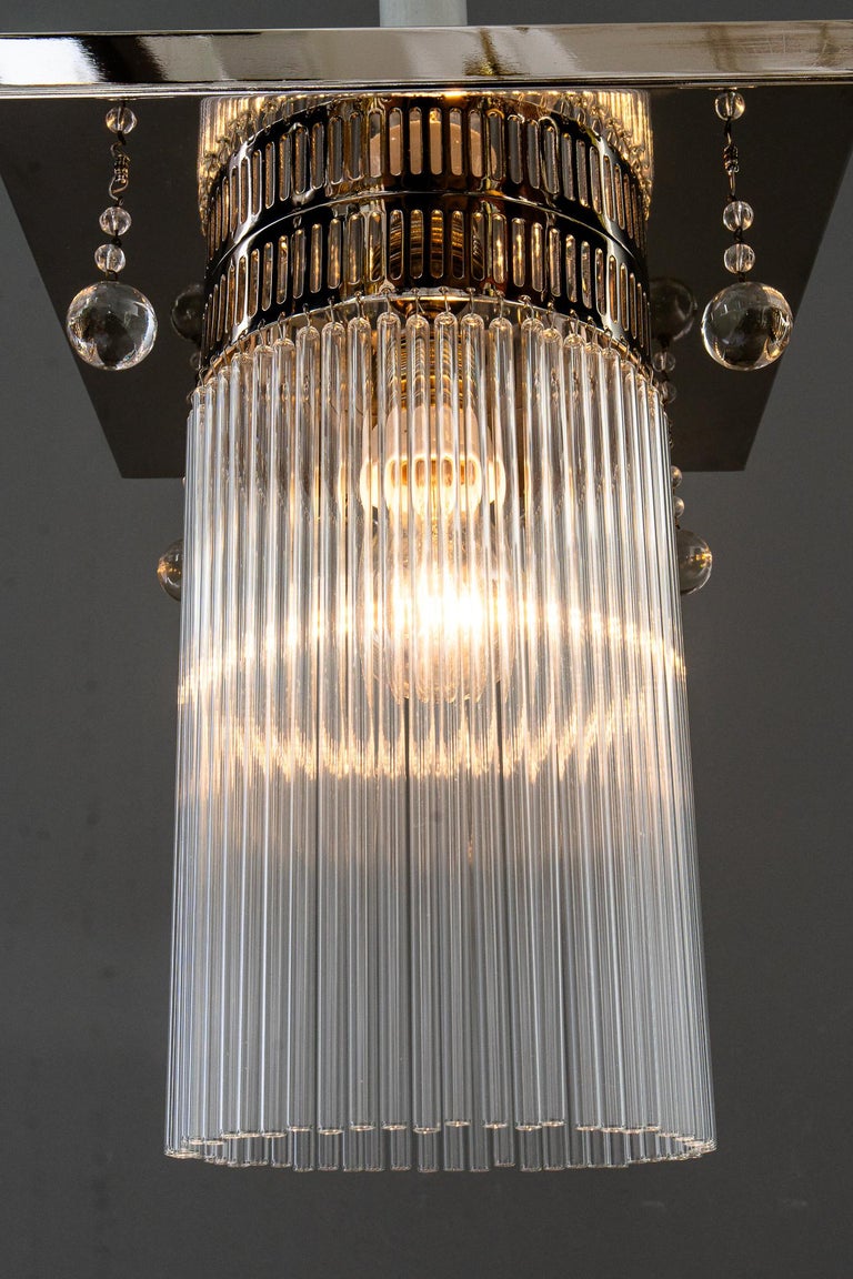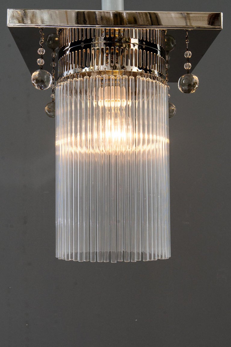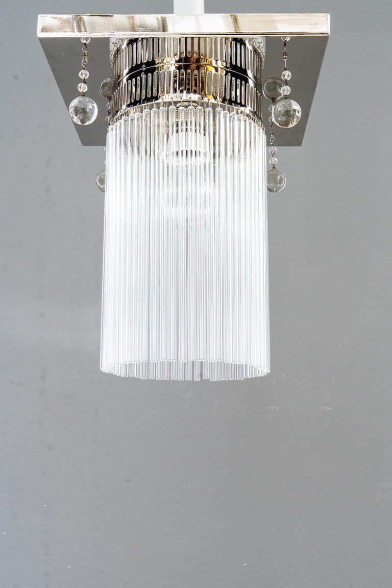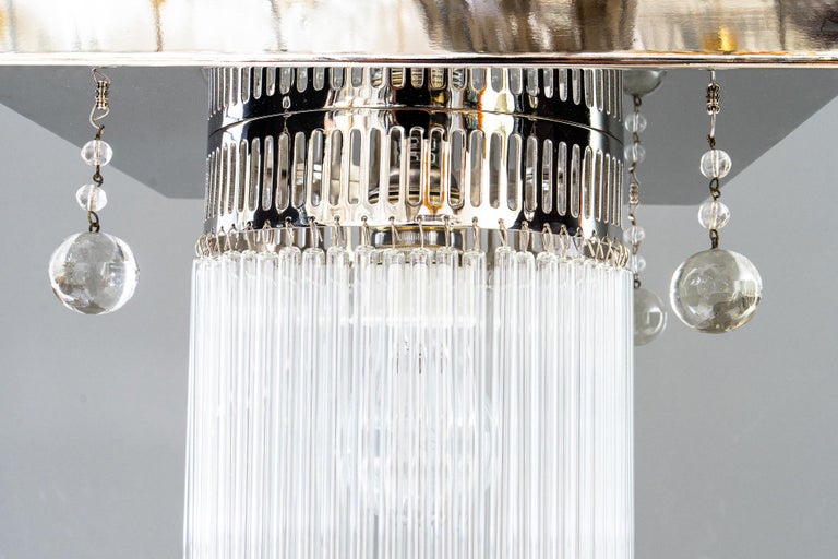 Nickel plated ceiling lamp with 4 original hanging parts vienna around 1920s