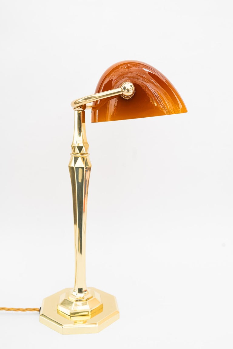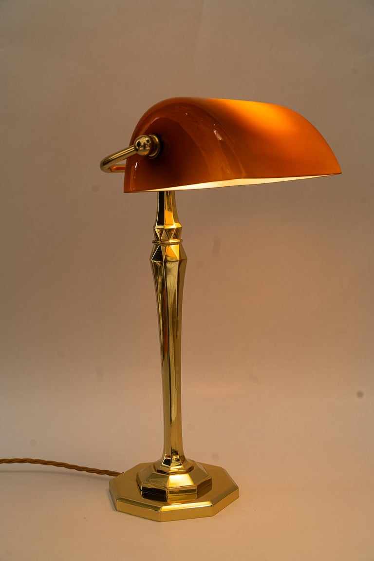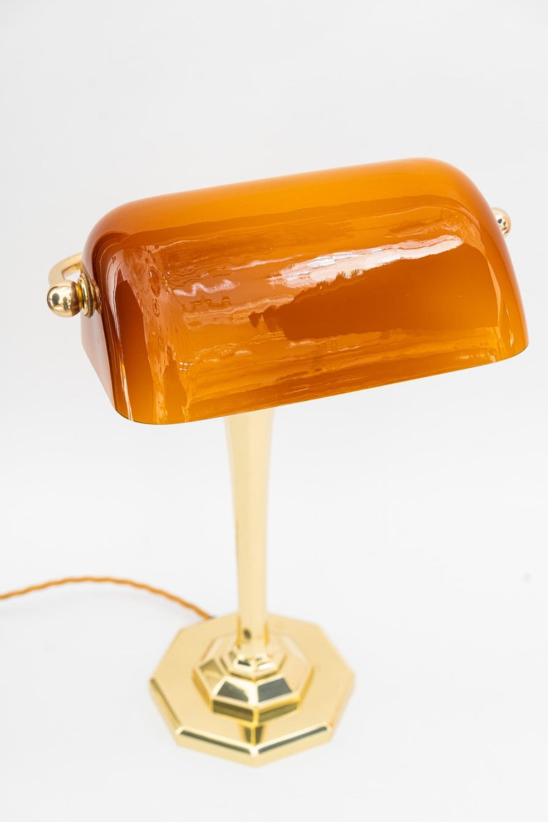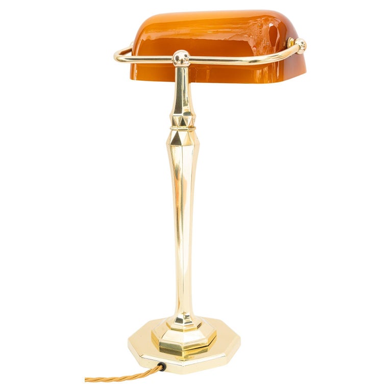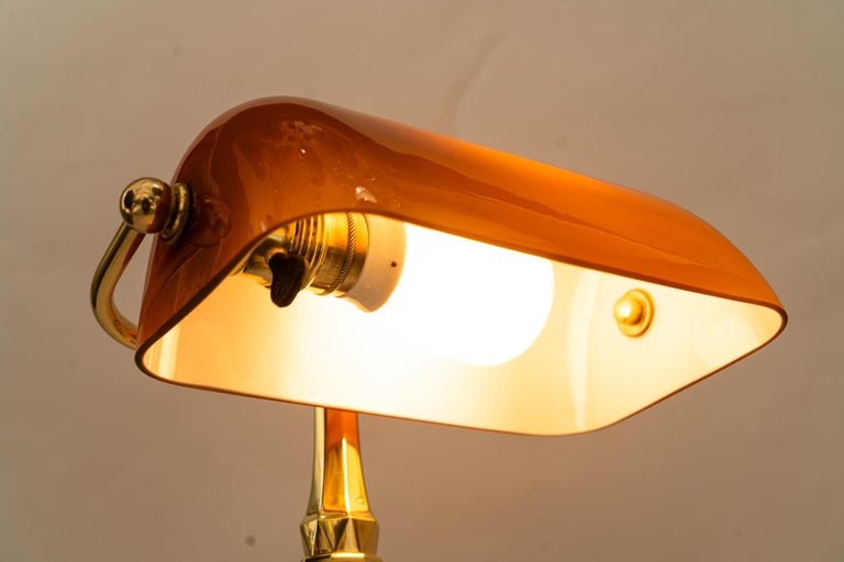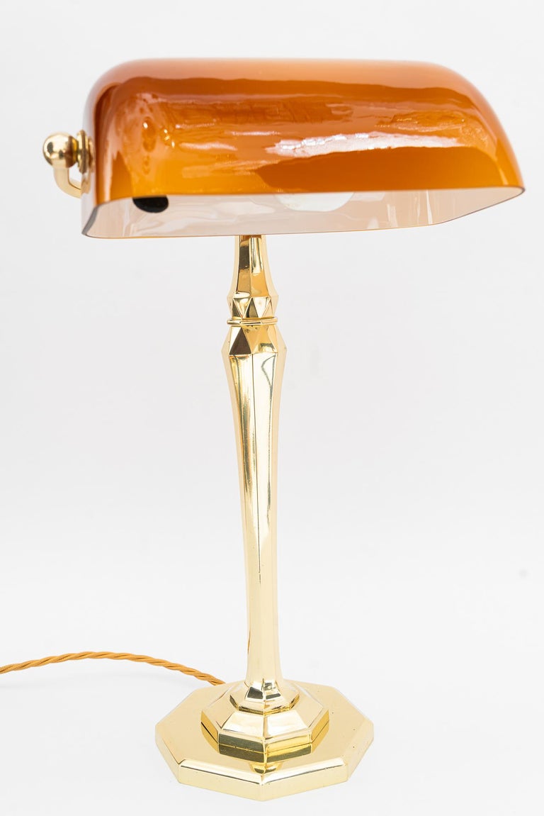 Solid Banker table lamp with original glass shade vienna around 1920s