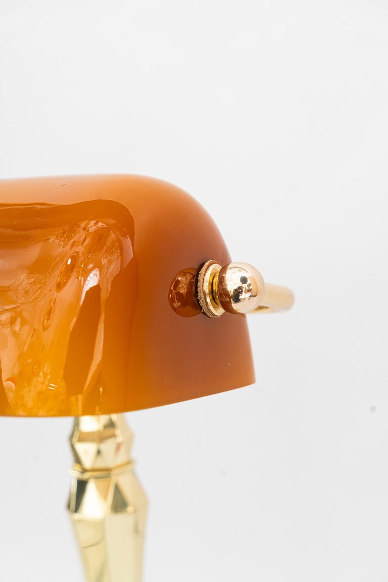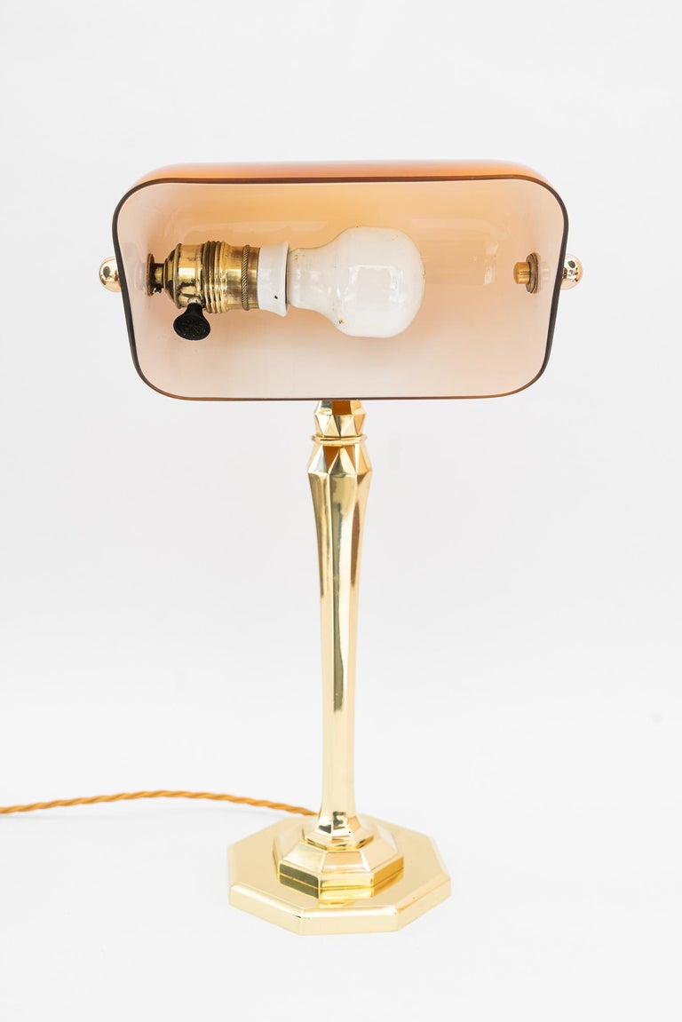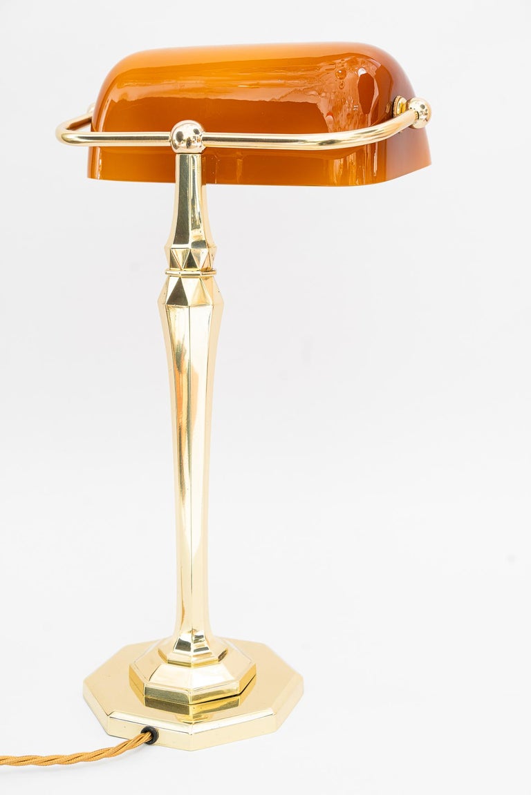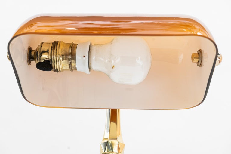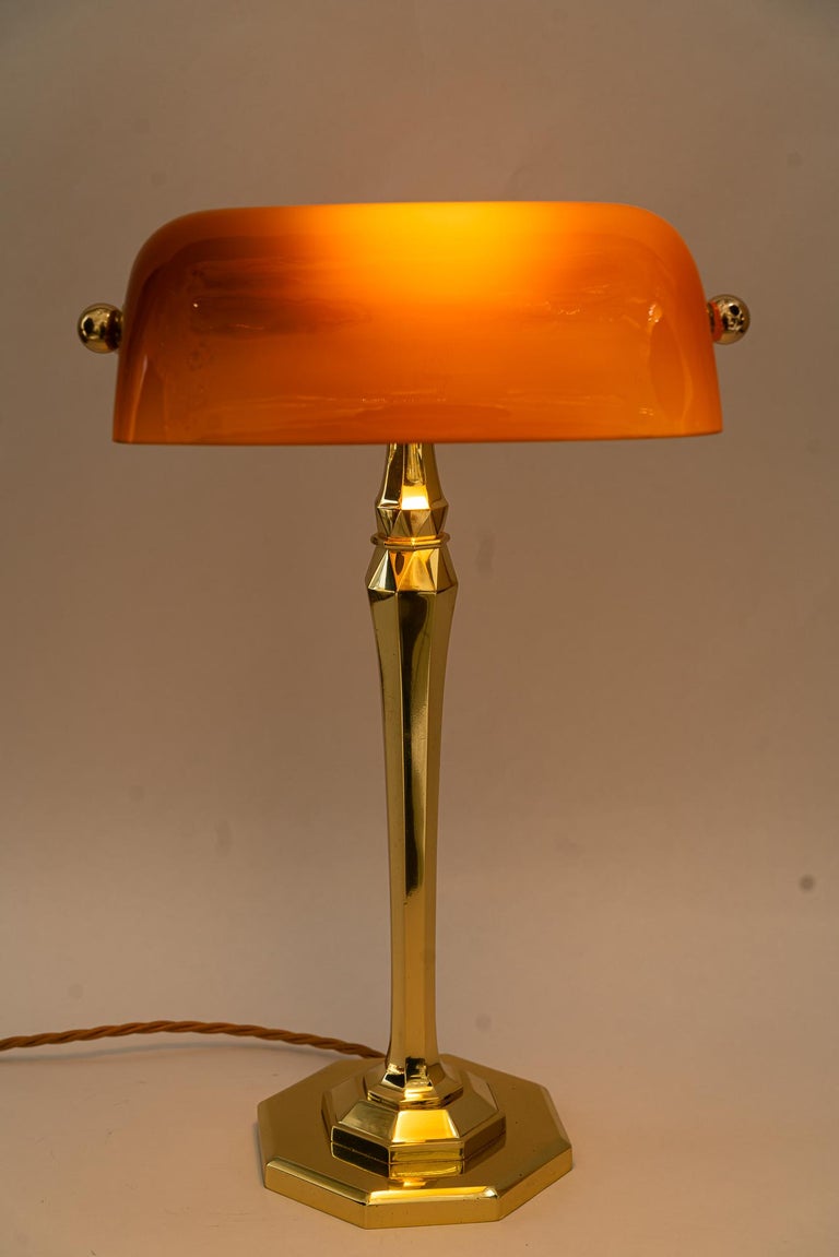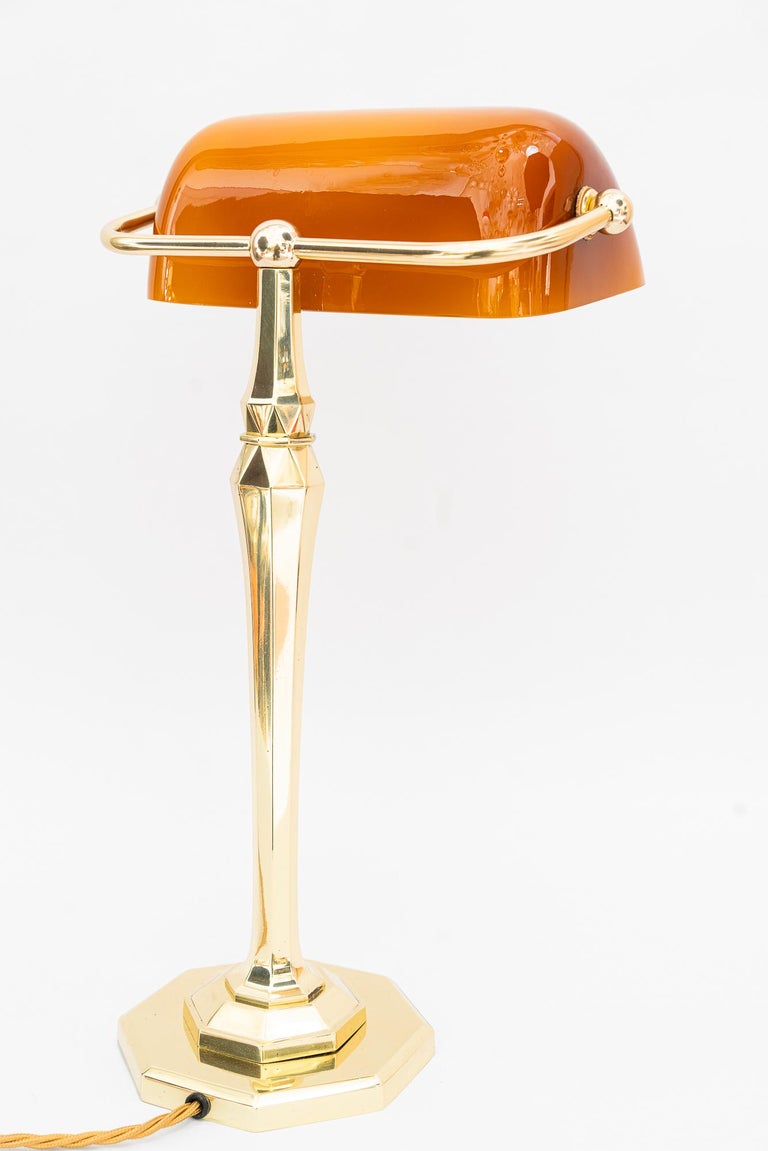 Solid Banker table lamp with original glass shade vienna around 1920s